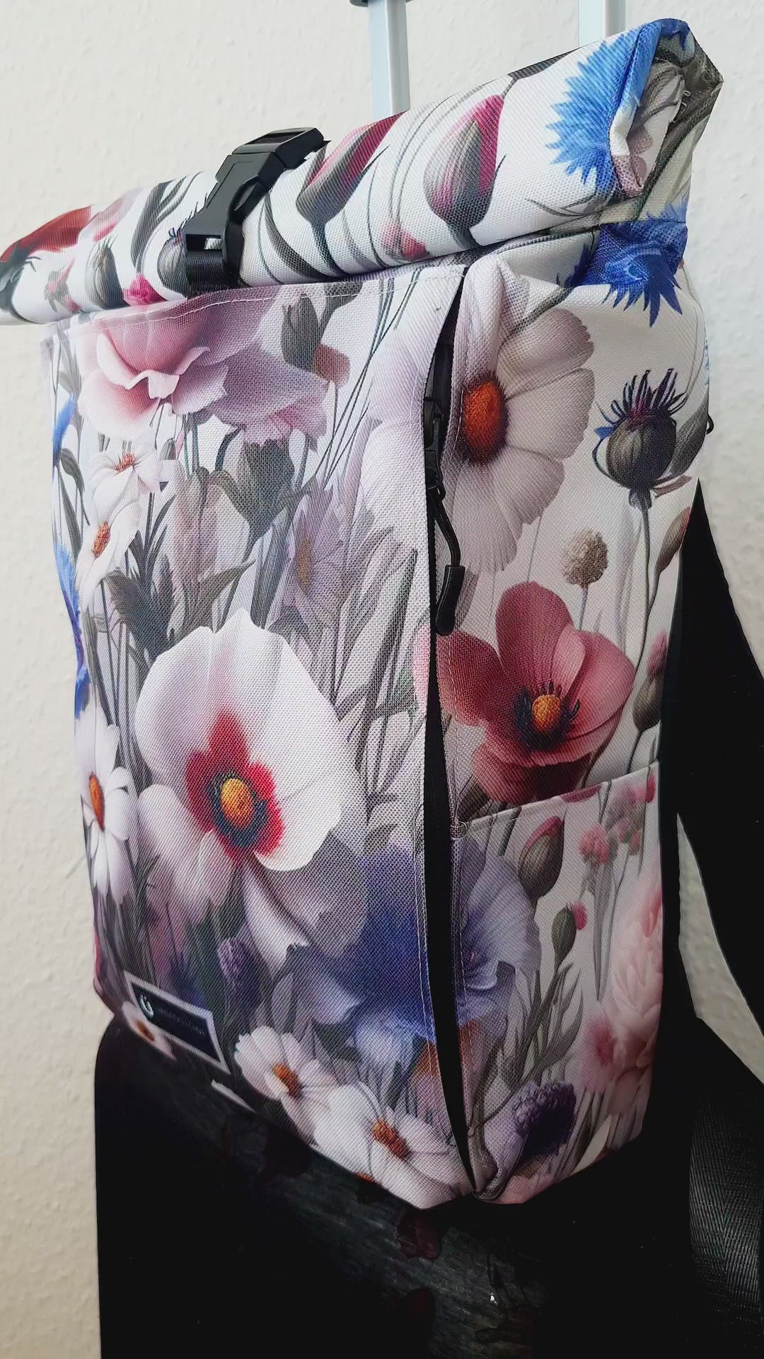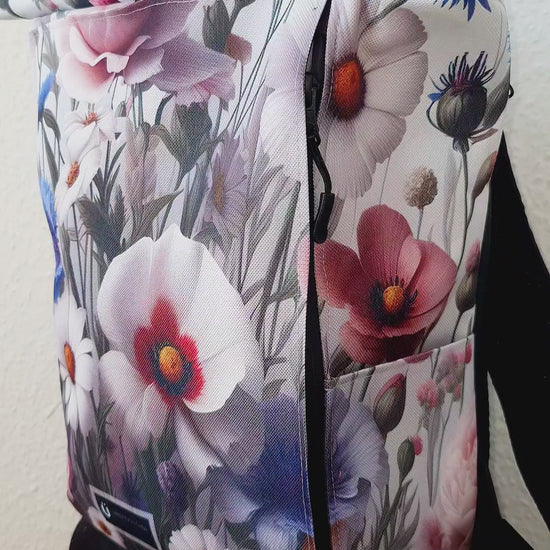 MultiPocket Rucksack Rolltop mit Blumendesign – Handmade in Deutschland